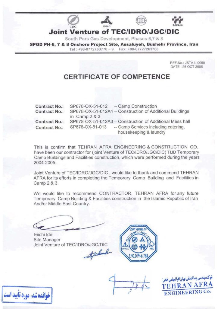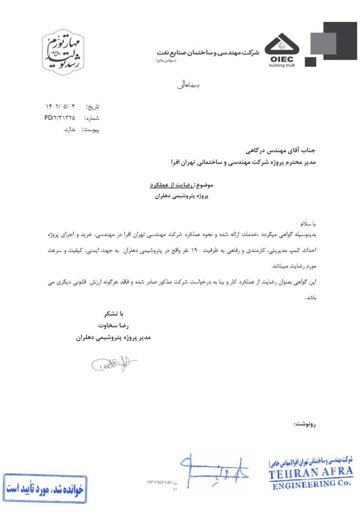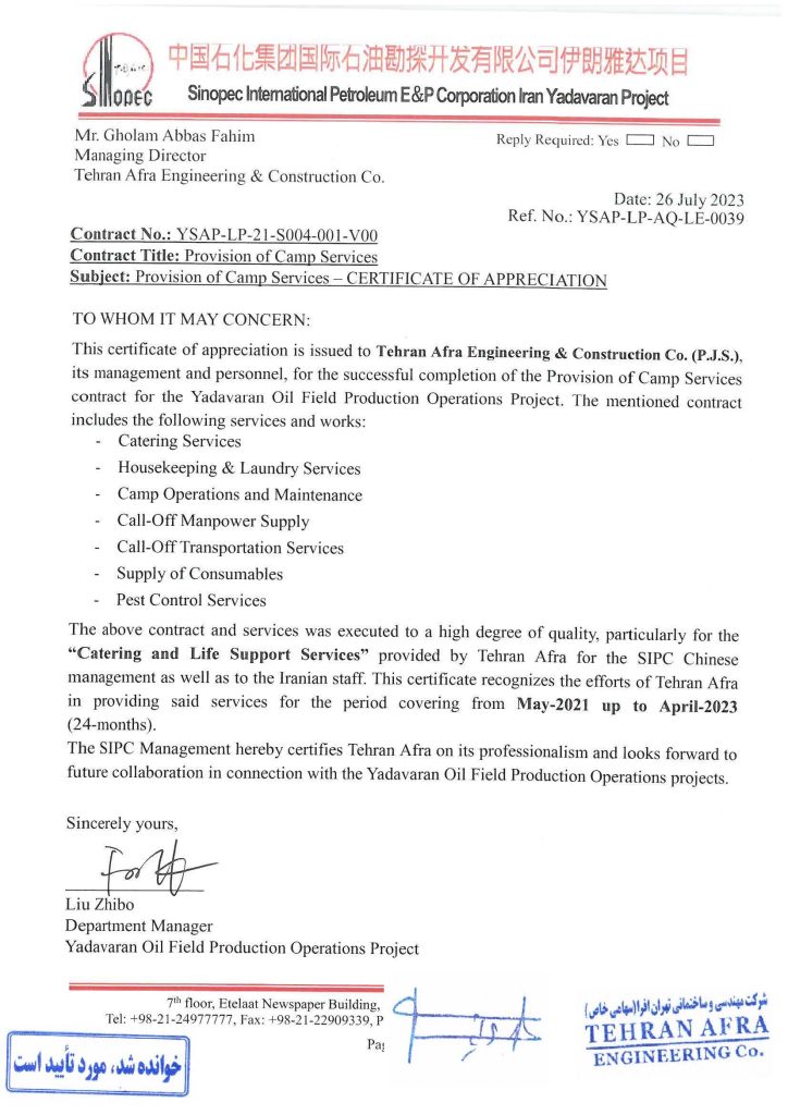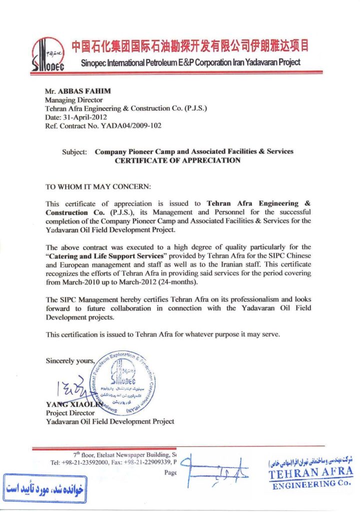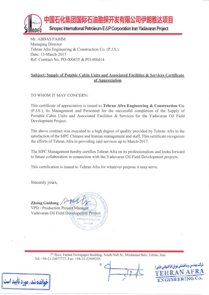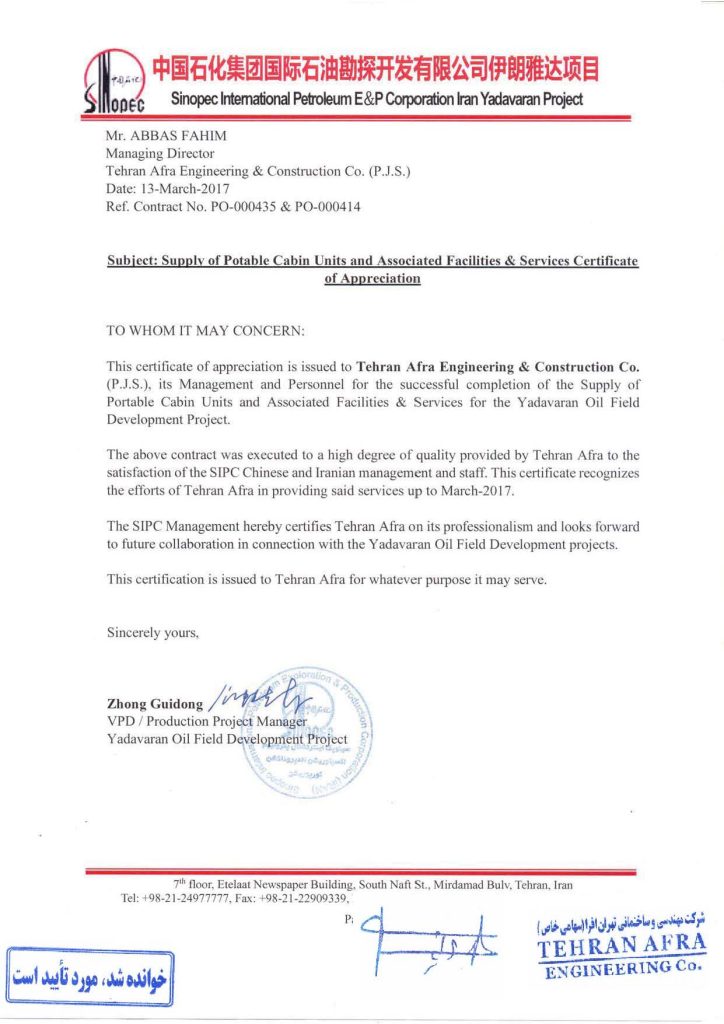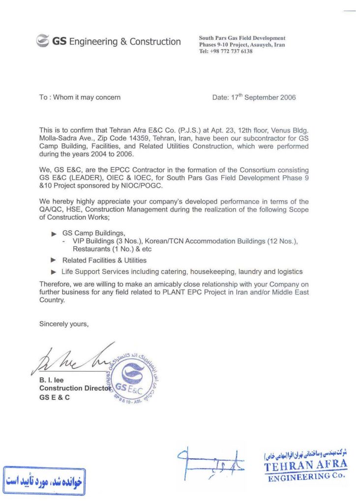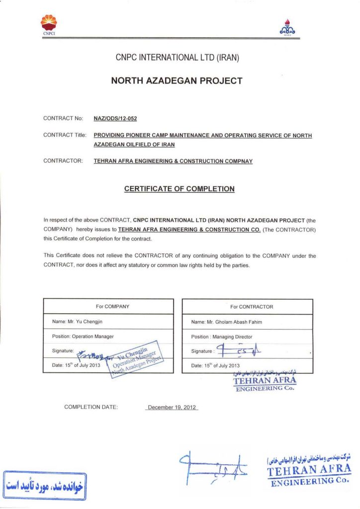 Our clients are our measure of success. While we offer them our available technology and creative ideas to reach to their targeted objectives, they allow us the opportunity to do what we do best and to maximize our potential. TEHRAN AFRA is proud of its association with some of the most prestigious and internationally recognized companies. Thran Afra has done extensive works for a number of clients, both local and international, who has provided certificates of appreciations and satisfaction, some of which are seen below: